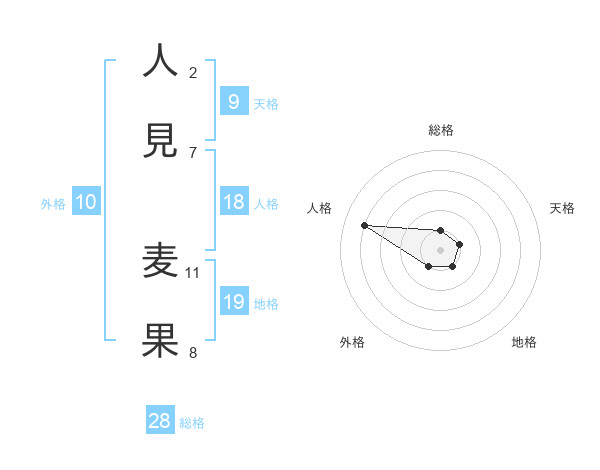 人見 麦果さんの総格は28画の1点!