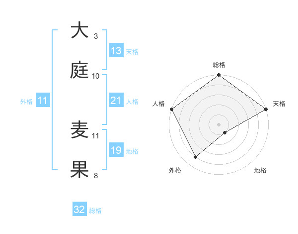 大庭 麦果さんを姓名の画数から五運を鑑定