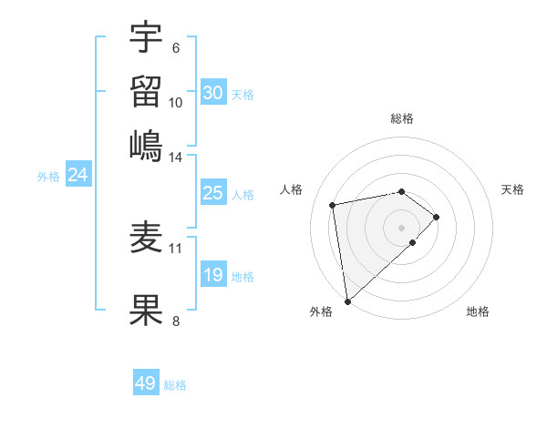 宇留嶋 麦果さんを姓名の画数から五運を鑑定