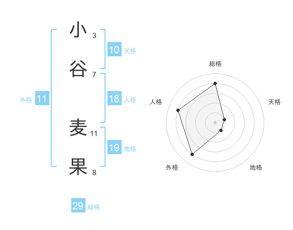 小谷 麦果さんを姓名の画数から五運を鑑定