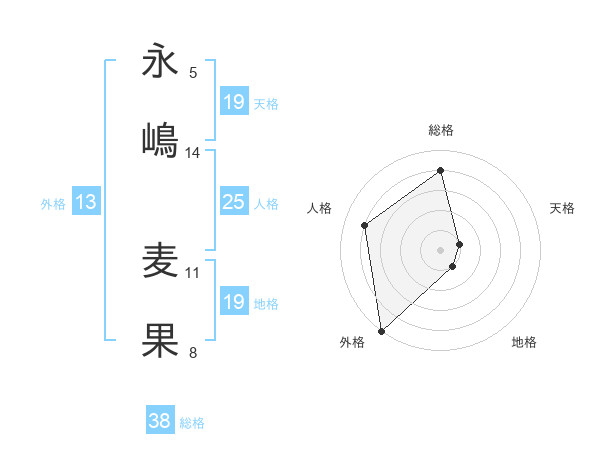 永嶋 麦果さんを姓名の画数から五運を鑑定