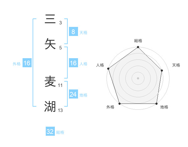 三矢 麦湖さんの総格は32画の5点!