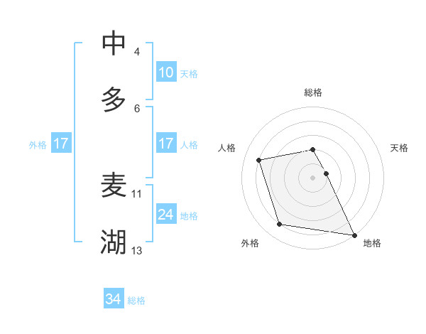 中多 麦湖さんの外格は17画の4点!