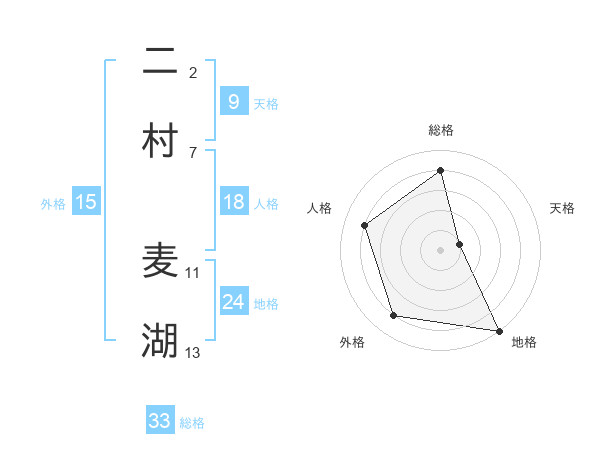二村 麦湖さんを姓名の画数から五運を鑑定