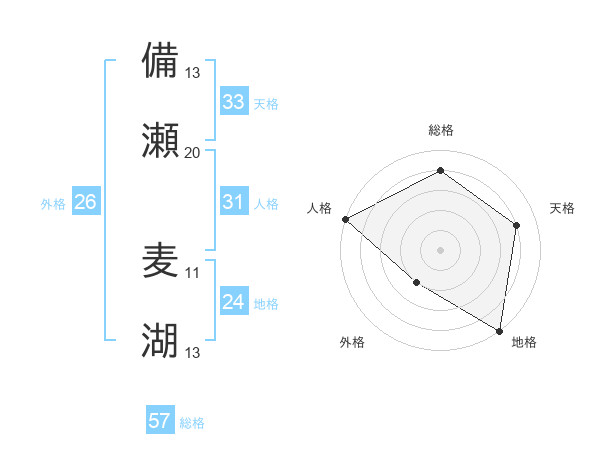 備瀬 麦湖さんを姓名の画数から五運を鑑定