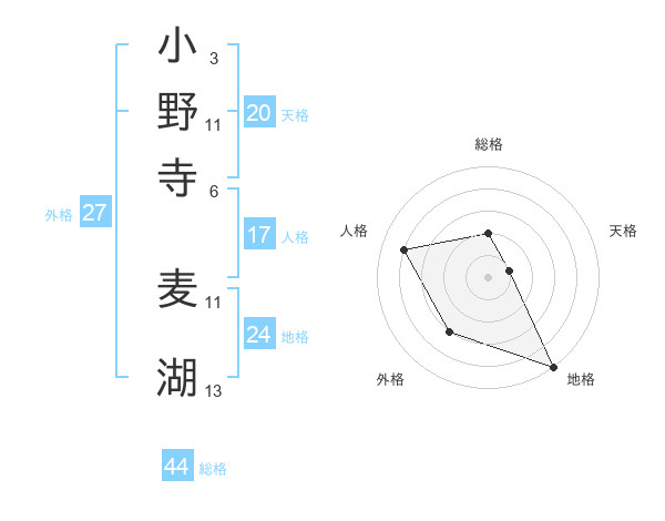 小野寺 麦湖さんを姓名の画数から五運を鑑定