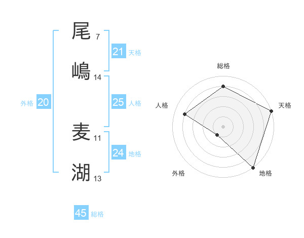 尾嶋 麦湖さんを姓名の画数から五運を鑑定