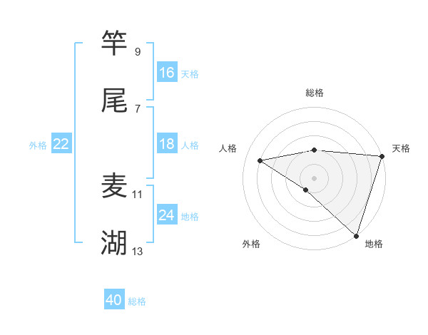 竿尾 麦湖さんを姓名の画数から五運を鑑定
