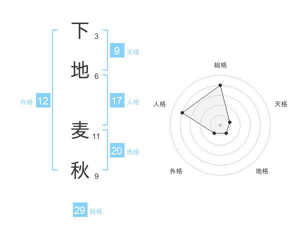 下地 麦秋さんの総格は29画の4点