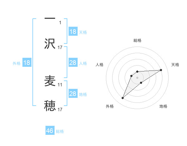一沢 麦穂さんの天格は18画の4点!