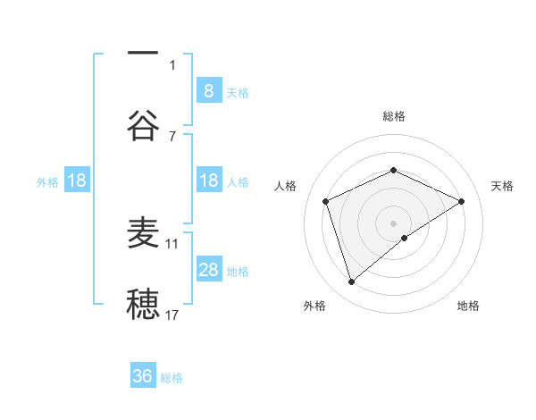 一谷 麦穂さんの天格は8画の4点!