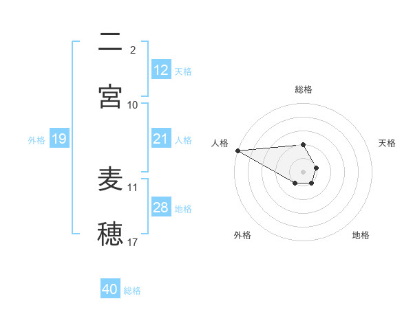 二宮 麦穂さんを姓名の画数から五運を鑑定