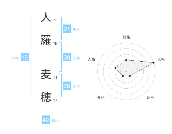 人羅 麦穂さんの天格は21画の5点!