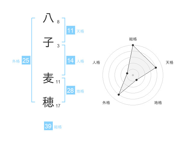 八子 麦穂さんの天格は11画の4点!
