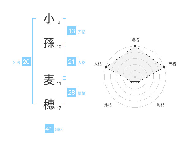 小孫 麦穂さんの総格は41画の5点!