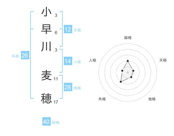 小早川 麦穂さんの天格は12画の1点!