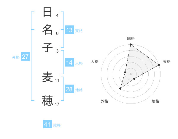 日名子 麦穂さんの総格は41画の5点!