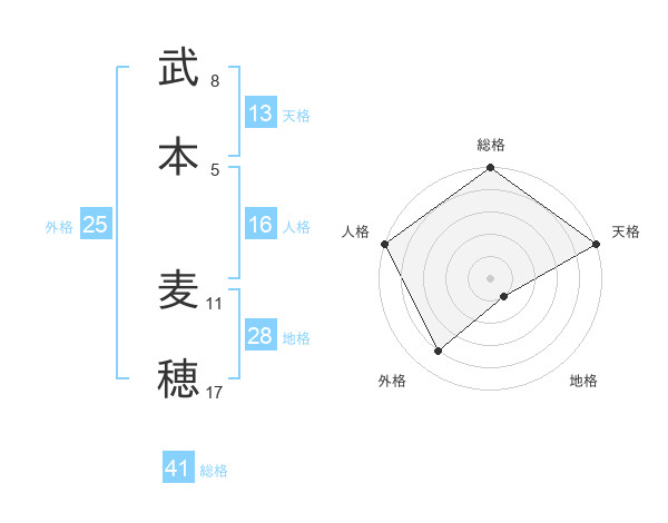 武本 麦穂さんの総格は41画の5点!