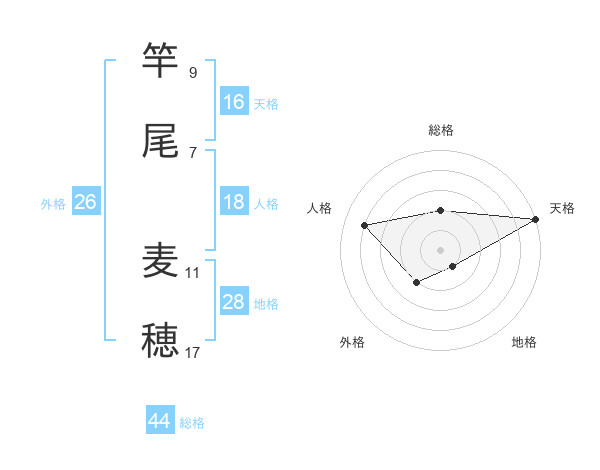 竿尾 麦穂さんの天格は16画の5点!