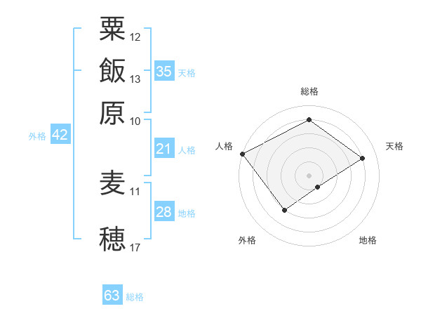 粟飯原 麦穂さんの総格は63画の4点!