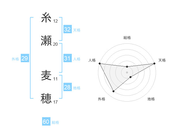 糸瀬 麦穂さんの外格は29画の4点!
