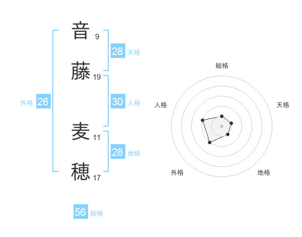 音藤 麦穂さんの天格は28画の1点!