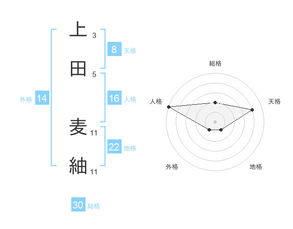 上田 麦紬さんの天格は8画の4点!