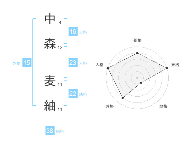 中森 麦紬さんを姓名の画数から五運を鑑定