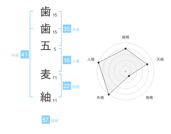 歯歯五 麦紬さんの外格は41画の5点!