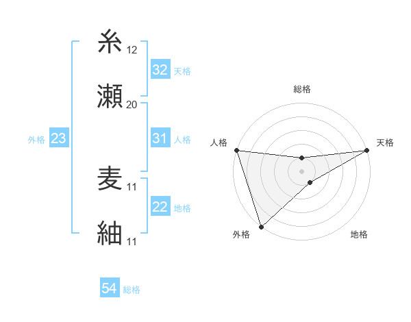 糸瀬 麦紬さんを姓名の画数から五運を鑑定