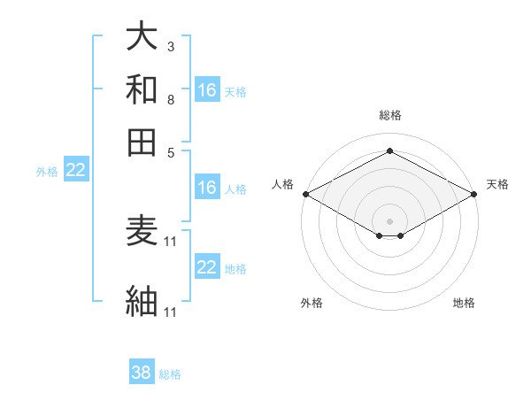 大和田 麦紬さんを姓名の画数から五運を鑑定