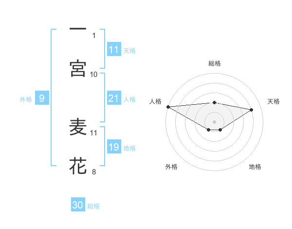 一宮 麦花さんを姓名の画数から五運を鑑定