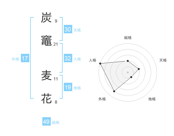 炭竈 麦花さんの総格は49画の2点!