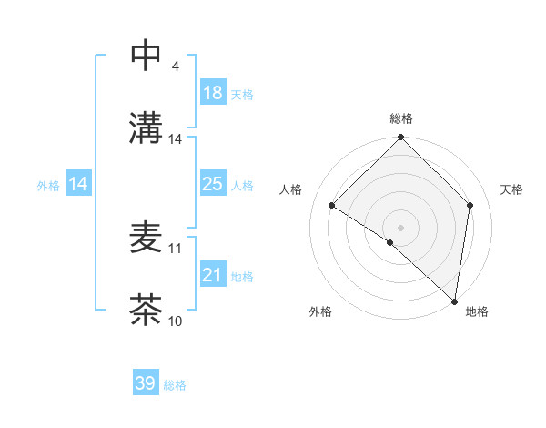 中溝 麦茶さんの総格は39画の5点!
