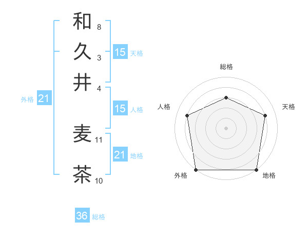 和久井 麦茶さんを姓名の画数から五運を鑑定