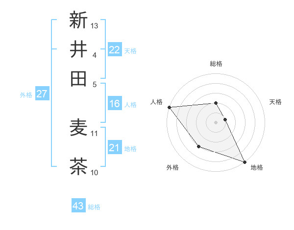 新井田 麦茶さんの総格は43画の2点!