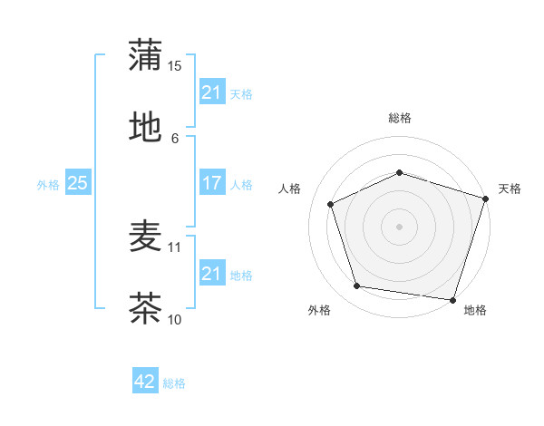 蒲地 麦茶さんの地格は21画の5点!