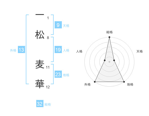 一松 麦華さんの総格は32画の5点!