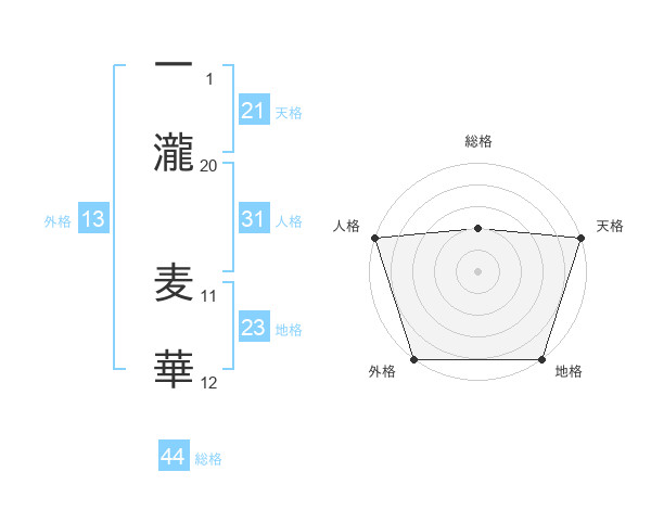 一瀧 麦華さんの外格は13画の5点!