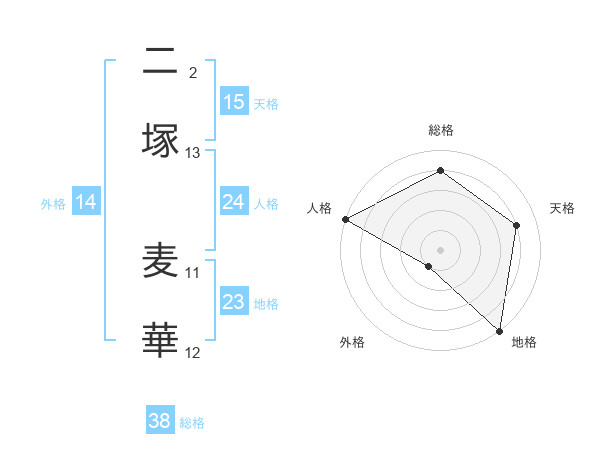 二塚 麦華さんの総格は38画の4点!