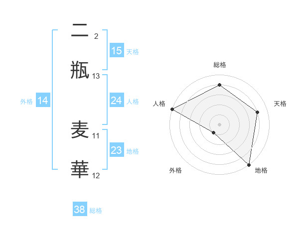 二瓶 麦華さんを姓名の画数から五運を鑑定