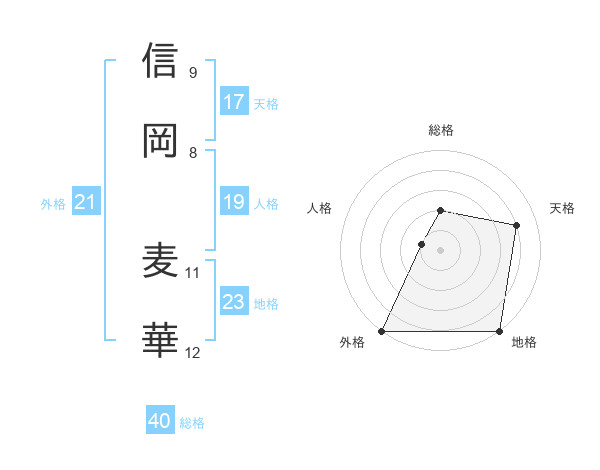 信岡 麦華さんの天格は17画の4点!