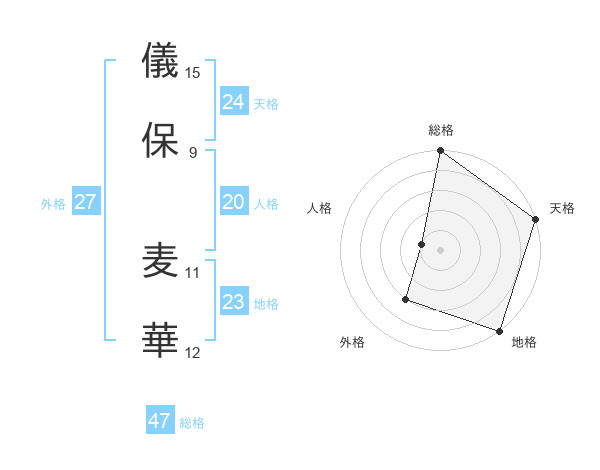 儀保 麦華さんの総格は47画の5点!