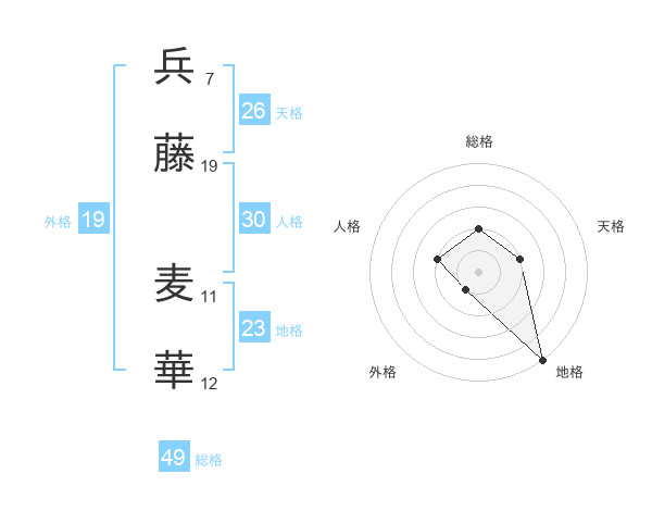 兵藤 麦華さんの総格は49画の2点!