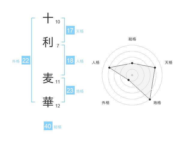 十利 麦華さんの天格は17画の4点!
