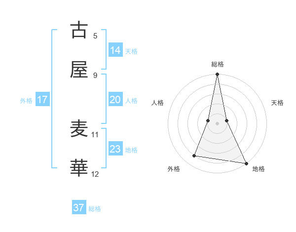 古屋 麦華さんの総格は37画の5点!