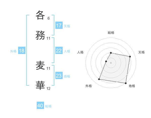 各務 麦華さんの総格は40画の2点!