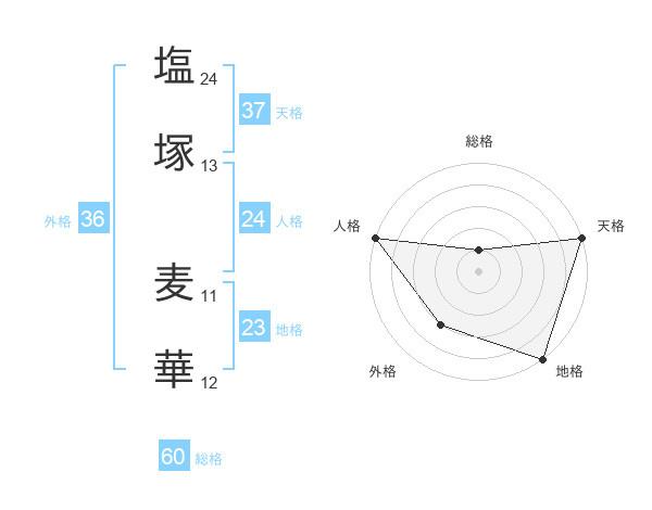 塩塚 麦華さんを姓名の画数から五運を鑑定