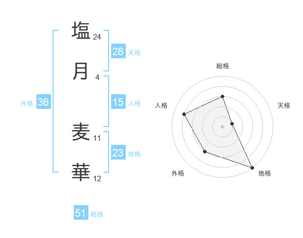 塩月 麦華さんの総格は51画の3点!