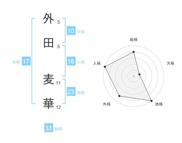 外田 麦華さんを姓名の画数から五運を鑑定